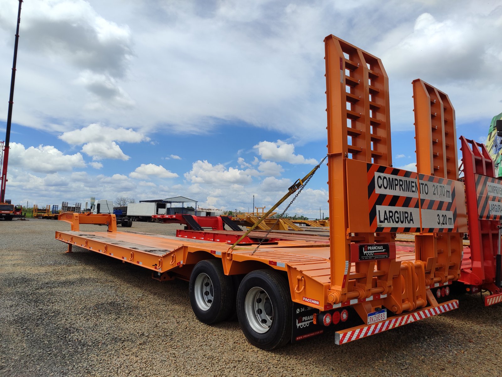 Prancha Semi Reboque Agrícola Carrega Tudo está pronta para atender suas necessidades de transporte.