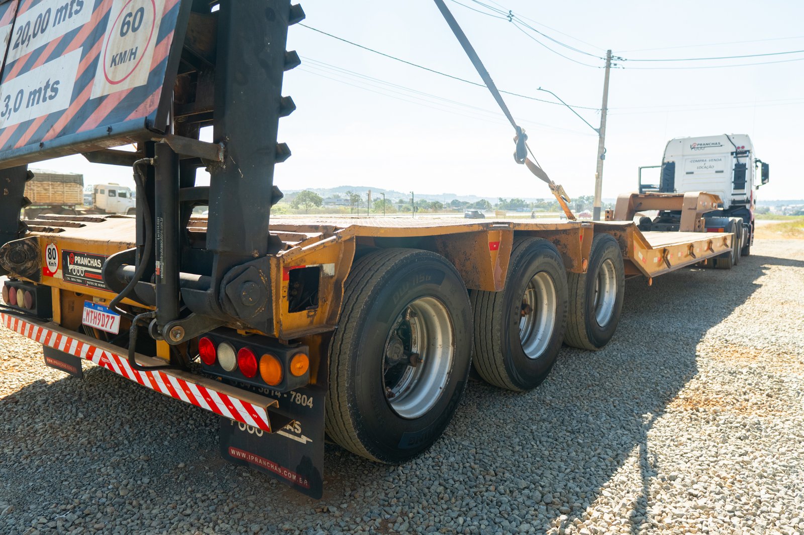 Prancha Carrega Tudo Semi Rebaixado AgrícolaMarca RandonAno 200210.80 MTS de área livre3 MTS de larguraRampas Eletro Hidráulicas03 eixosSem pneus