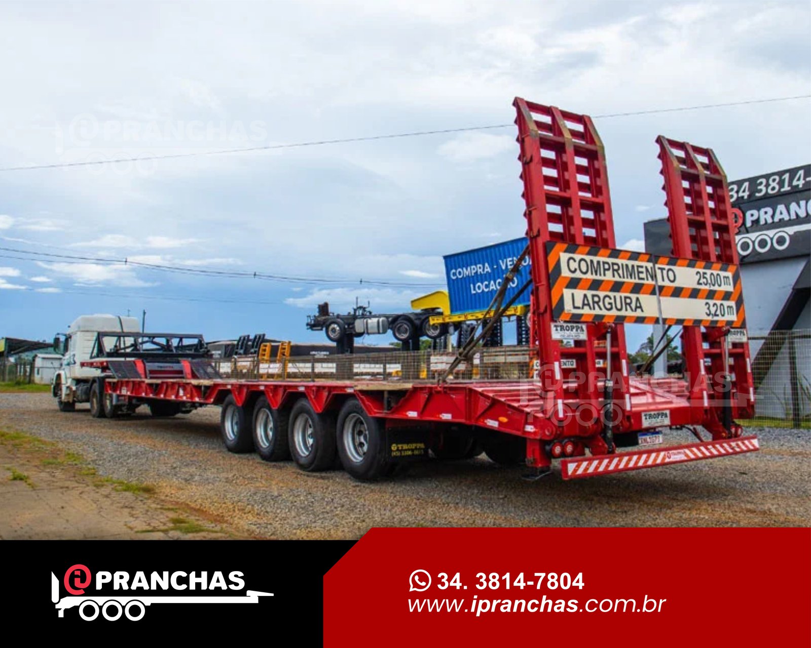 Prancha Semi Reboque Agrícola Carrega Tudo da Troppa está pronta para atender suas necessidades de transporte.